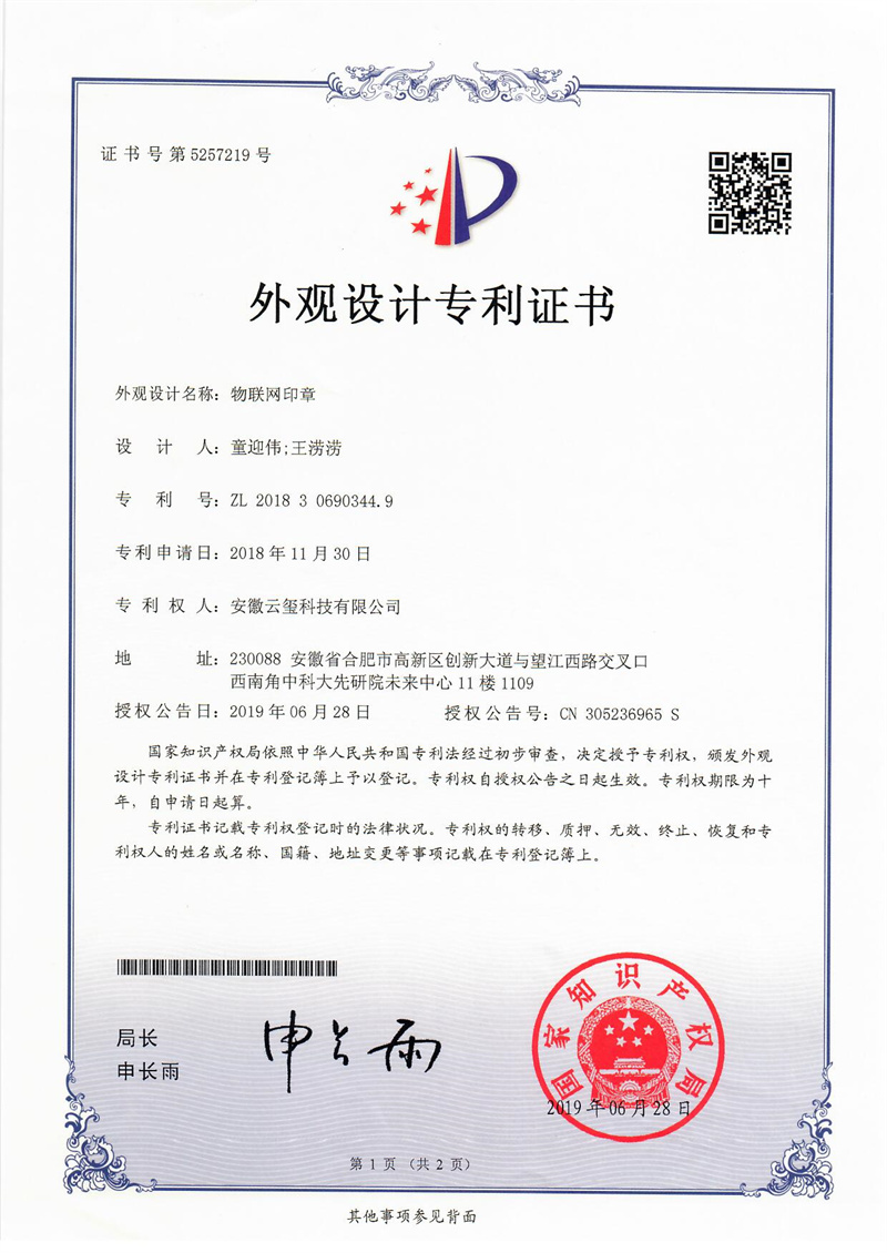 公司原創(chuàng)發(fā)明一體式智能印章技術(shù),引領(lǐng)國內(nèi)外新一代智能印簽創(chuàng)新變革。獲中日韓多項(xiàng)發(fā)明專利,徹底解決了實(shí)體印章和電子印簽管控的社會(huì)難題,獲國務(wù)院國資委全國央企熠星二等獎(jiǎng)。公司聯(lián)合國家信息安全產(chǎn)品認(rèn)證中心、公安部三所、信通院、中國印章協(xié)會(huì)等,主導(dǎo)起草了行業(yè)首個(gè)智能印章安全認(rèn)證標(biāo)準(zhǔn)和智能印章產(chǎn)品標(biāo)準(zhǔn),引領(lǐng)了智能印章行業(yè)發(fā)展。